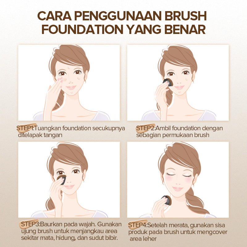 STEP3: Baurkan pada wajah, gunakan ujung brush untuk menjangkau area sekitar mata, hidung, dan sudut bibir