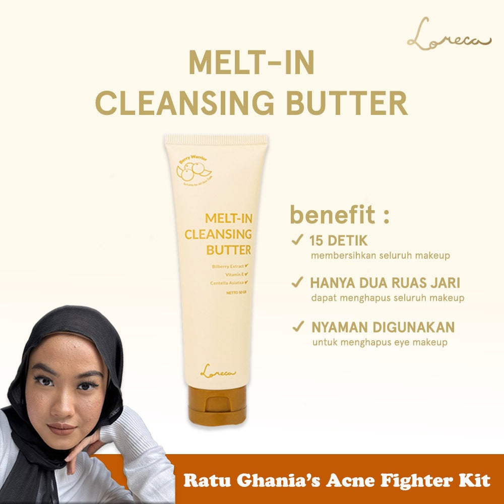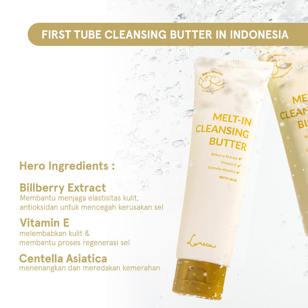 Loreca Melt-In Cleansing Butter diformulasi untuk dapat menghapus seluruh makeup diwajah. Dengan tekstur seperti Butter yang dapat meluruhkan seluruh makeup waterproof hanya selama 15 detik.