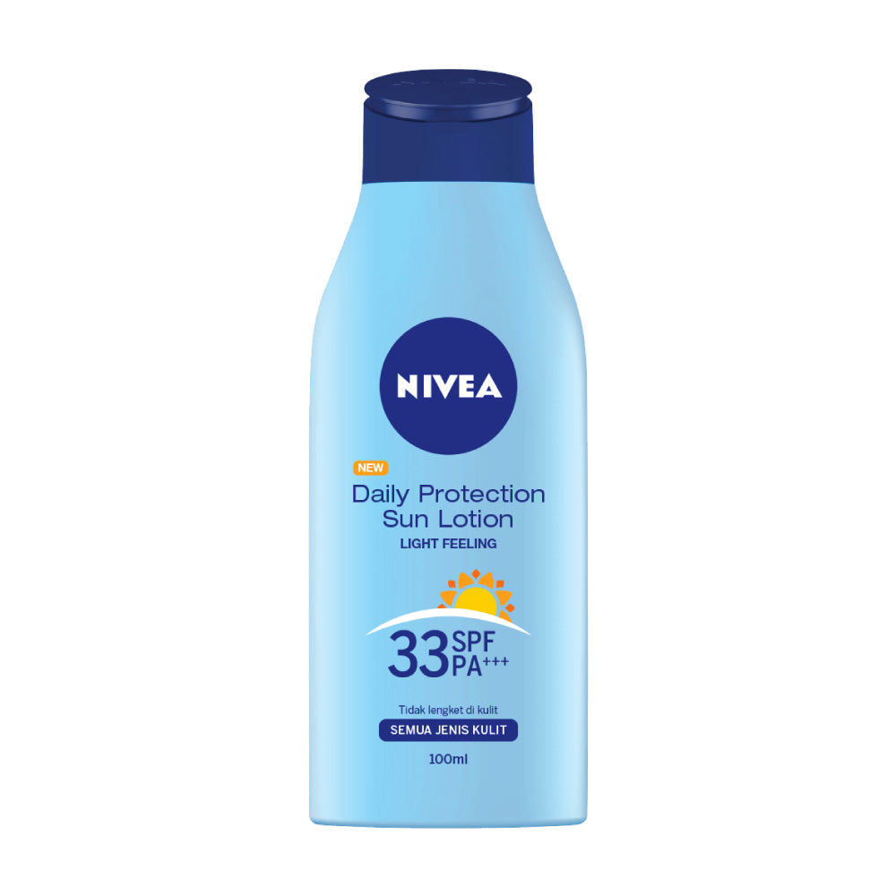 Nivea Body Lotion Daily Protection Sun SPF 33 PA+++ memberikan perlindungan seketika terhadap efek sinar matahari dengan kelembaban yang tahan lama dan tekstur yang ringan. Dapat digunakan untuk semua jenis kulit.