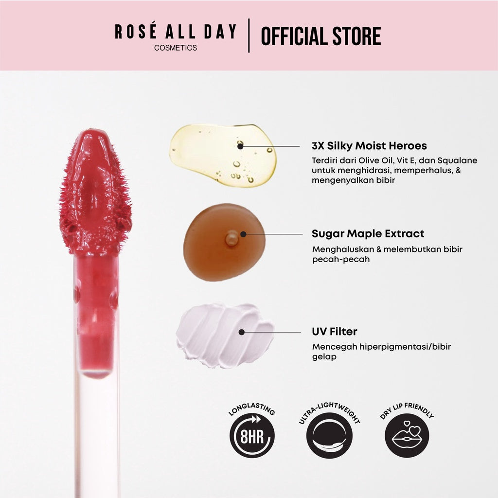 Lip Tint bertekstur gel ringan yang tahan lama & berpigmentasi intens. Bibir gelap langsung tertutup dalam sekali swipe dengan hasil silky glow yang natural. Dilengkapi dengan kandungan 3X Silky Moist yang secara instan menghidrasi bibir & menyamarkan garis halus bibir, sehingga bibir tampak kenyal dan sehat berkilau.